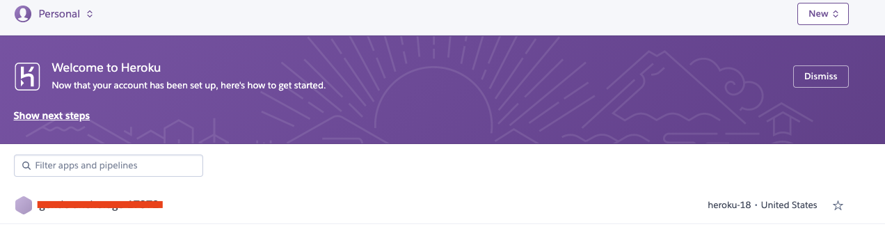 6. 로그인을 완료하고 heroku 사이트에 들어가서 내 개인 dashboard를 확인해보자