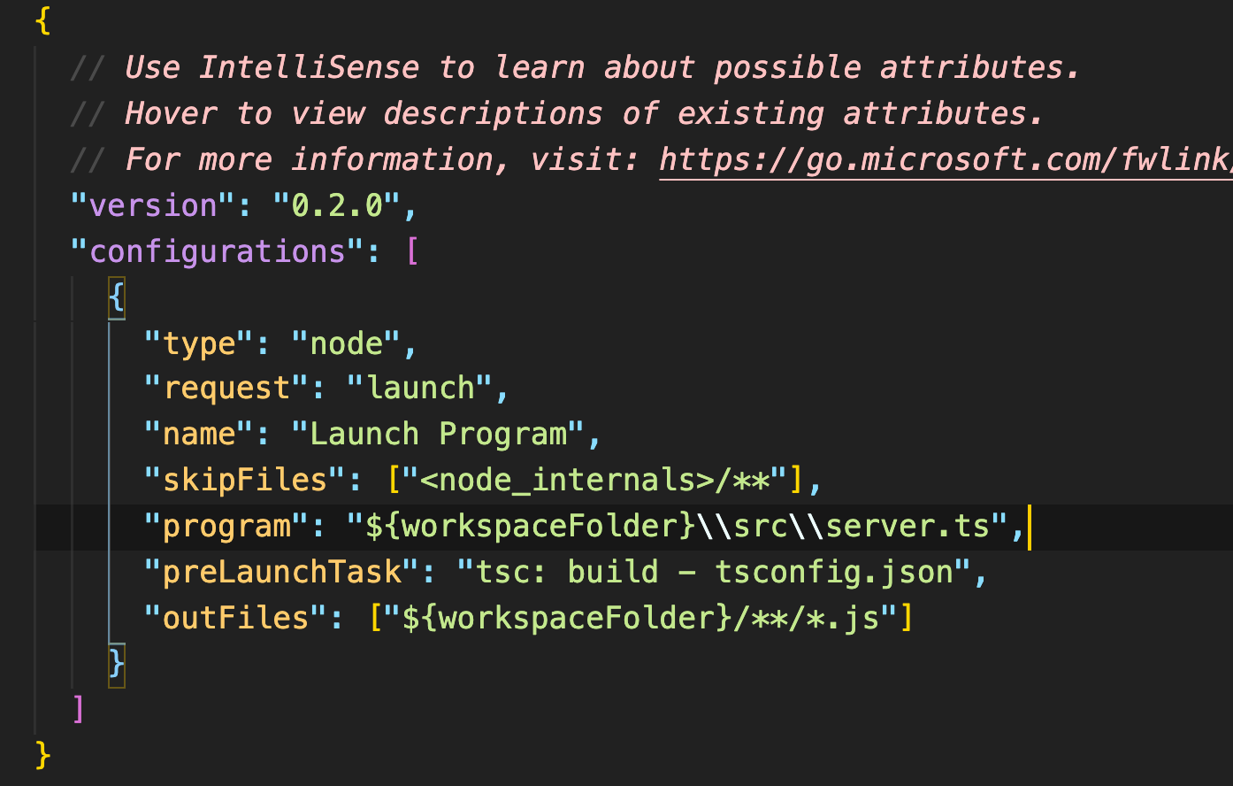 "preLaunchTask": "tsc: build - tsconfig.json" 해당 코드를 추가해준다.