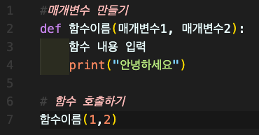 이때 함수 괄호 사이에 다양한 자료를 넣는데 이를 매개변수라고 부른다.
