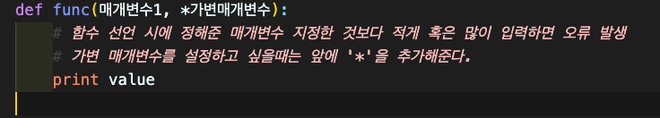 -> 가변 매개변수는 한 함수에 하나만 쓸 수 있다.
