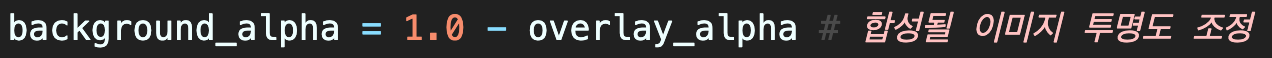 배경은 이미지와 반대가 되어야 하기 때문에, 위의 코드 처럼 배경이미지에서 합성할 오버레이 이미지를 빼주면 된다.