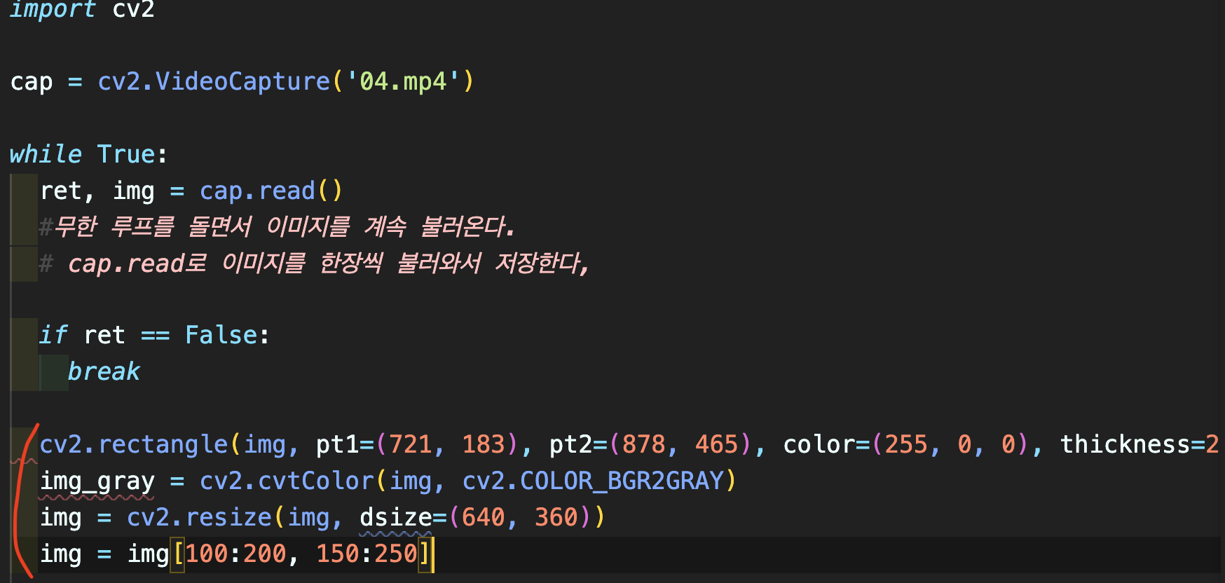 => 위의 모든 코드들을 while true를 도는 동영상 내의 이미지 출력 코드 아래에 기재하면 된다.