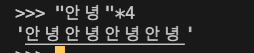 "문자열" * 숫자 : 숫자만큼 문자열이 반복해서 출력