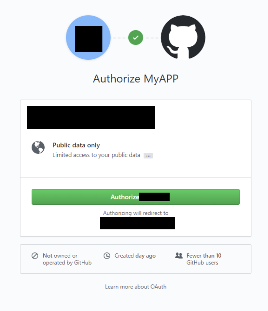 -> Authorize 버튼을 누르면 내가 사용자들을 redirect 시키고자 github OAuth에 등록한 링크로 이동하게 된다.